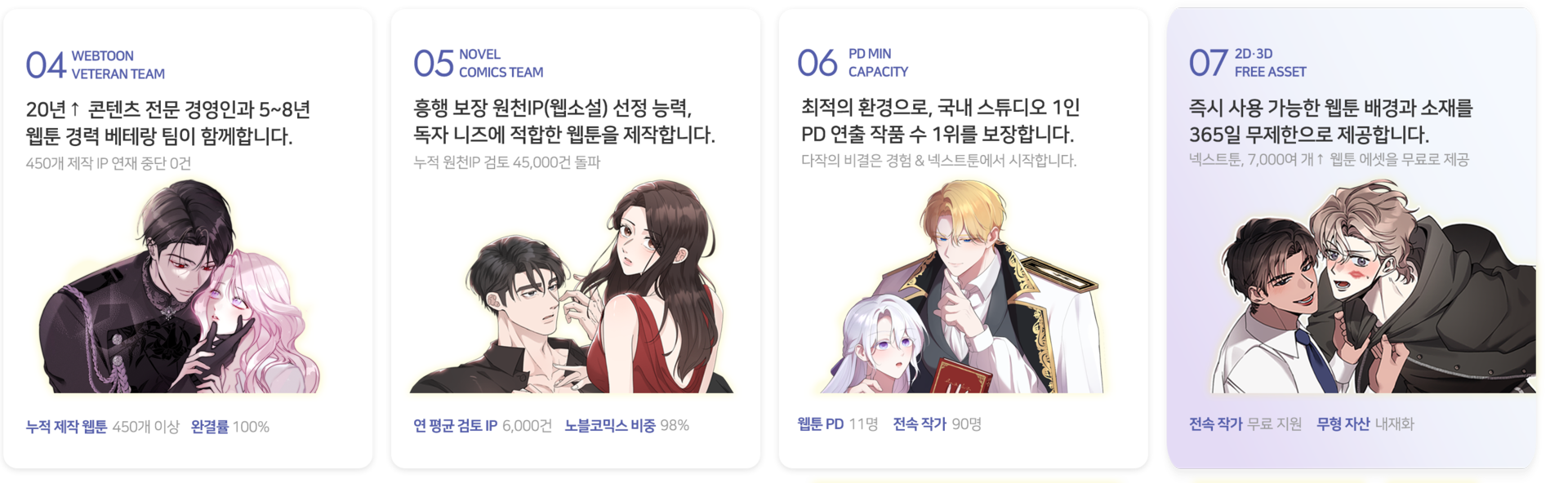 메타툰 스튜디오 팀은 입증된 배경을 바탕으로 최고의 퀄리티와 최고의 IP 탄생을 보장합니다.